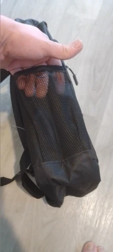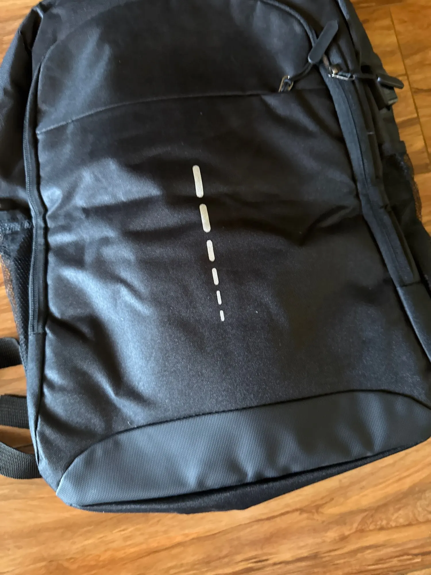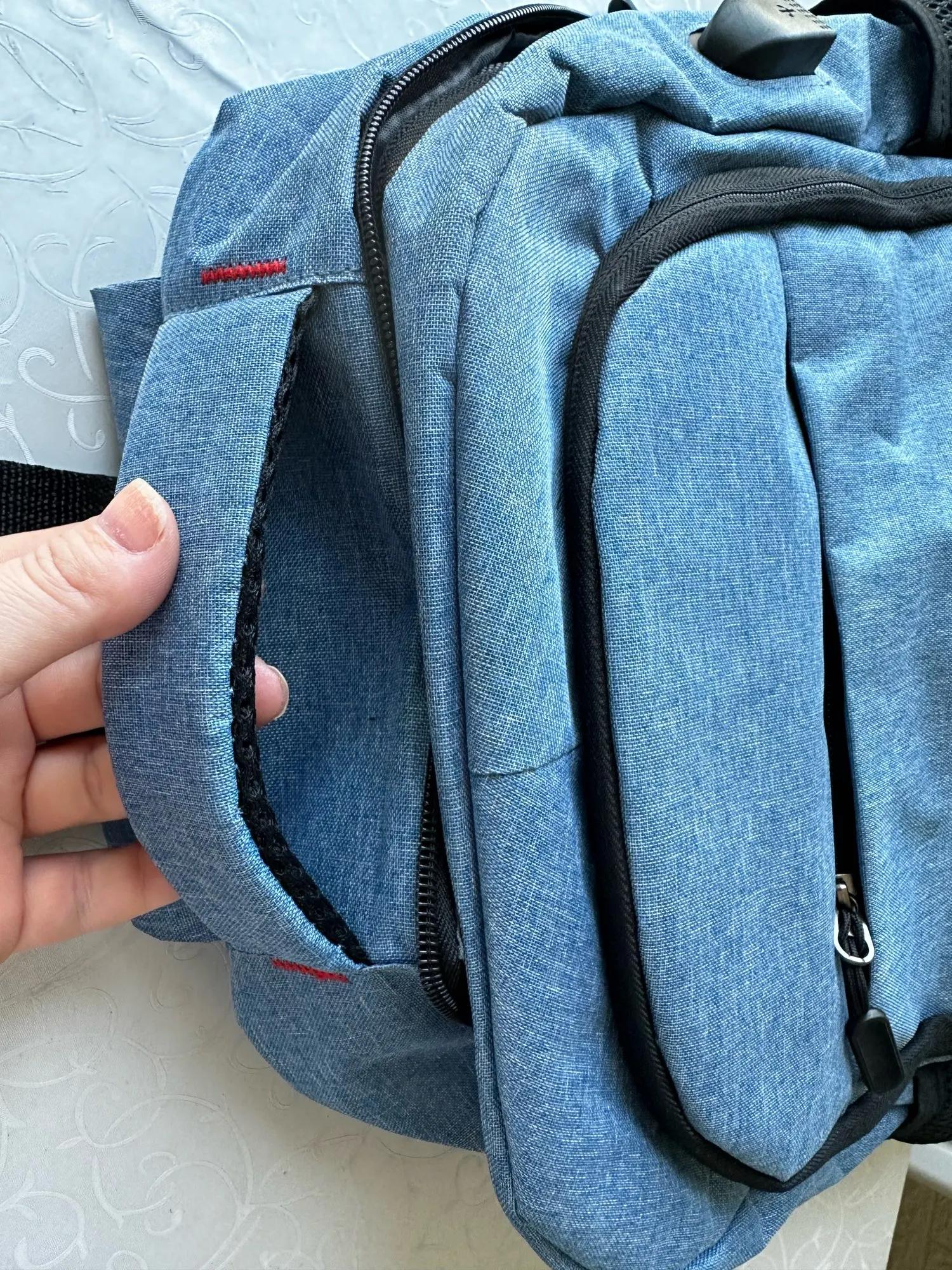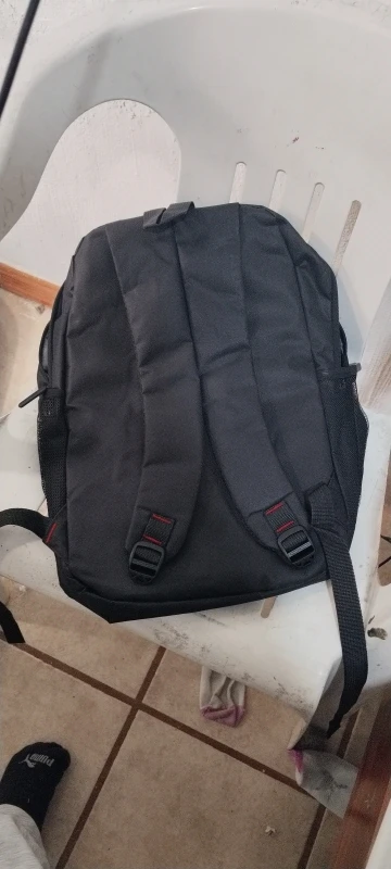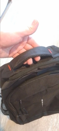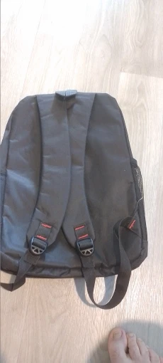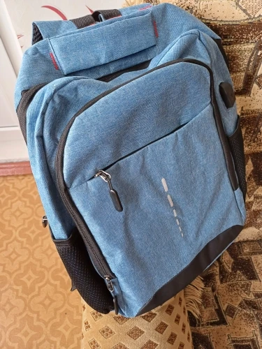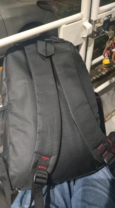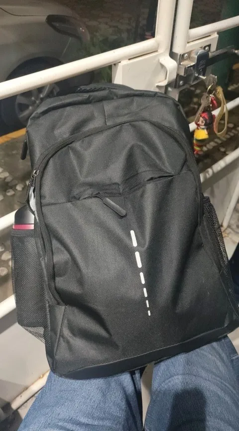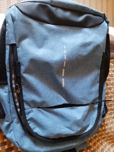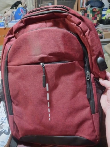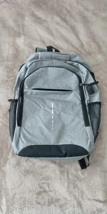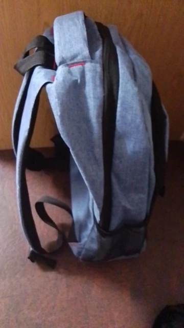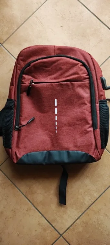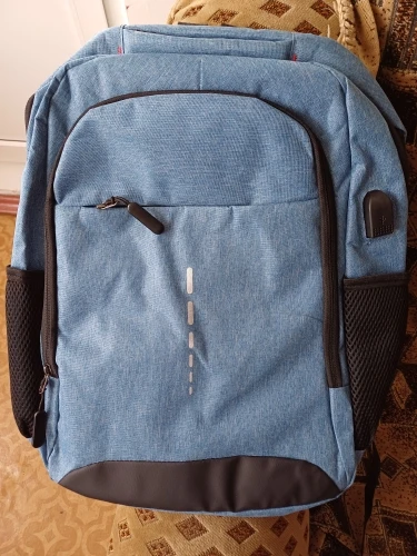 Good material, durable. I'm evaluating it after 1 week of daily use. It has a compartment for a laptop and +3 compartments for other items. It fits quite a lot, is light and comfortable, and has compartments for bottles on both sides.