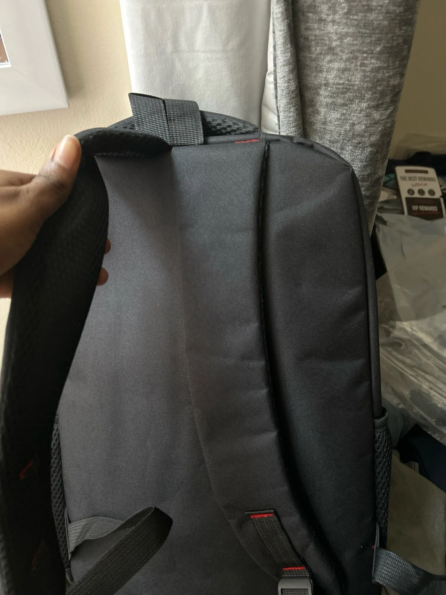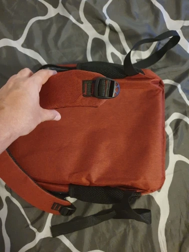 Belt: There is no chest or waist belt, but the shoulder belt and handle are reinforced with red stitching, which seems to enhance durability.