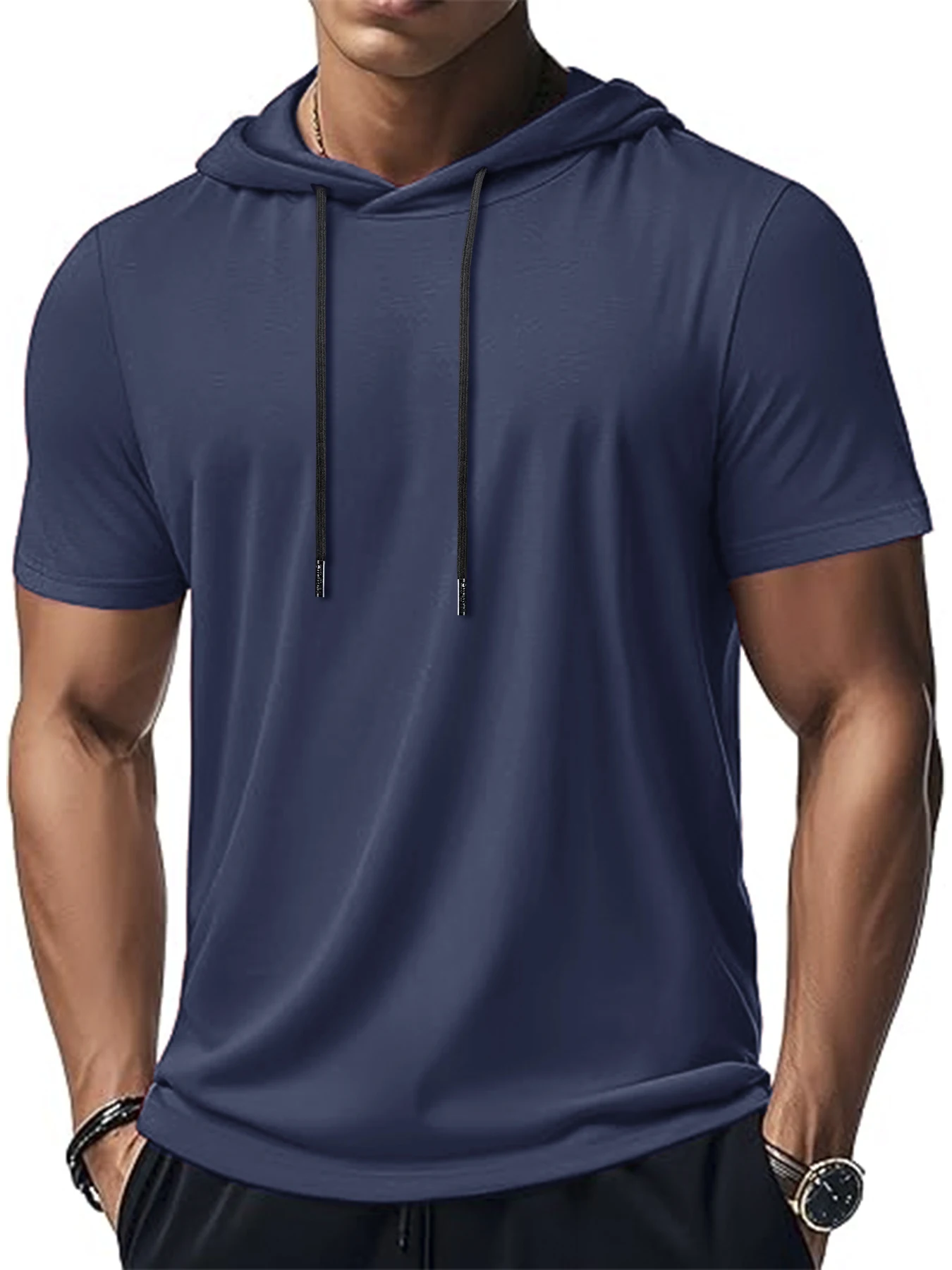 New Mens Short Sleeve Loose T-shirt Multi Solid Color Lightweight Hoodie Fitness Breathable Collar Tops Summer Hooded Sweatwear